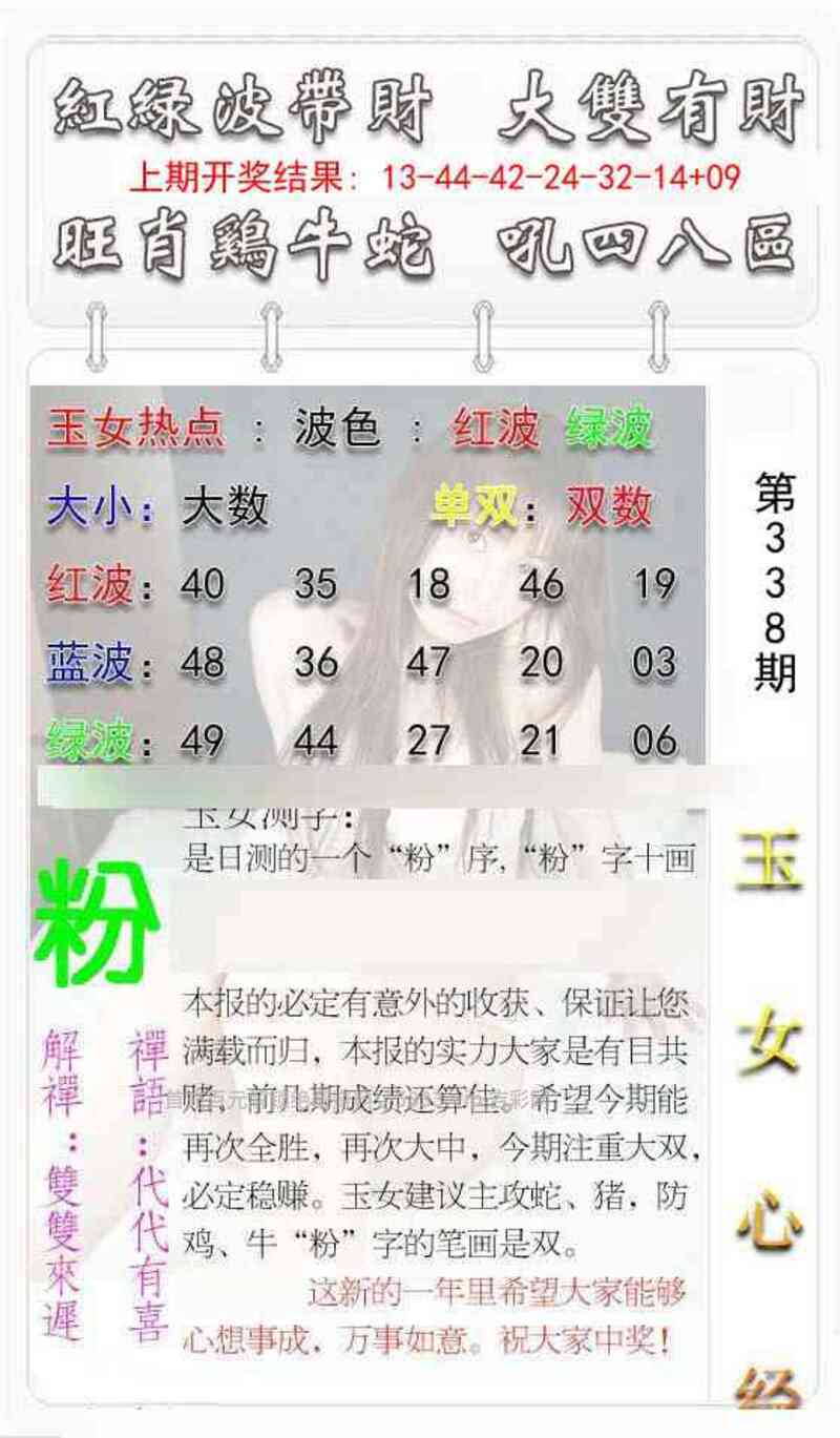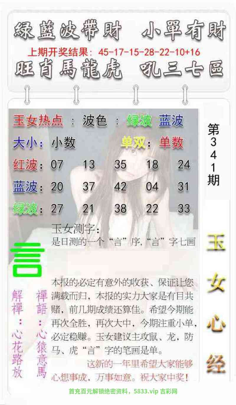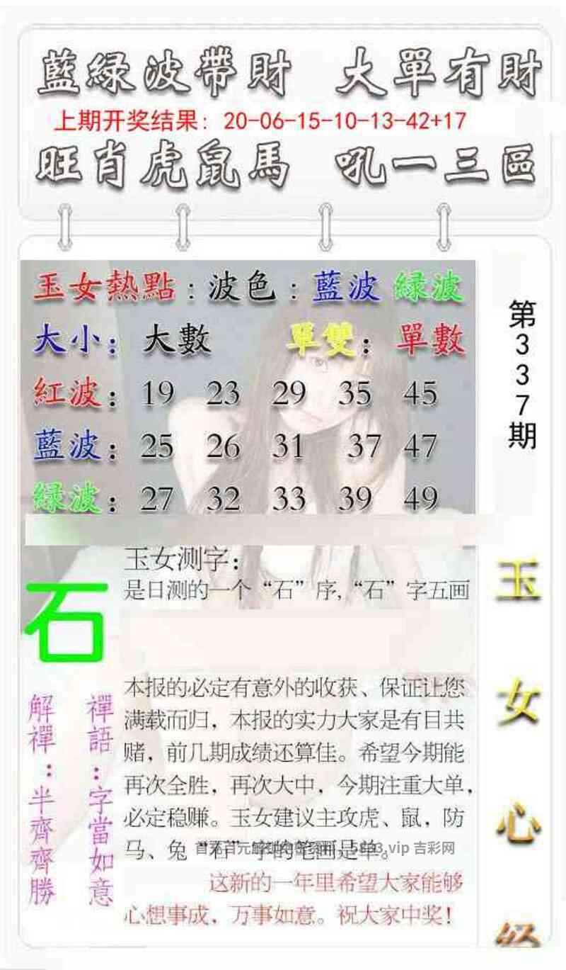 341期澳门彩票中心开鼠06 波色:绿波蓝波 尾数:5961830尾 生肖:羊蛇兔狗鸡马虎鼠牛 平特:羊羊羊 |