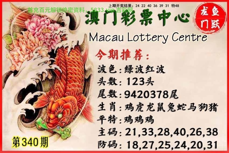 337期澳门彩票中心开鸡09 尾数:4598210尾 生肖:龙猴蛇猪鸡马虎狗鼠 平特:龙龙龙 |